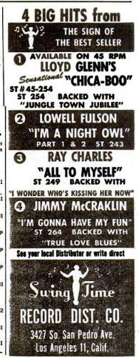 Ray Charles Trio: Ray Charles – voc, p (= “88”), cel; Oscar Moore – g; Johnny Miller – b.