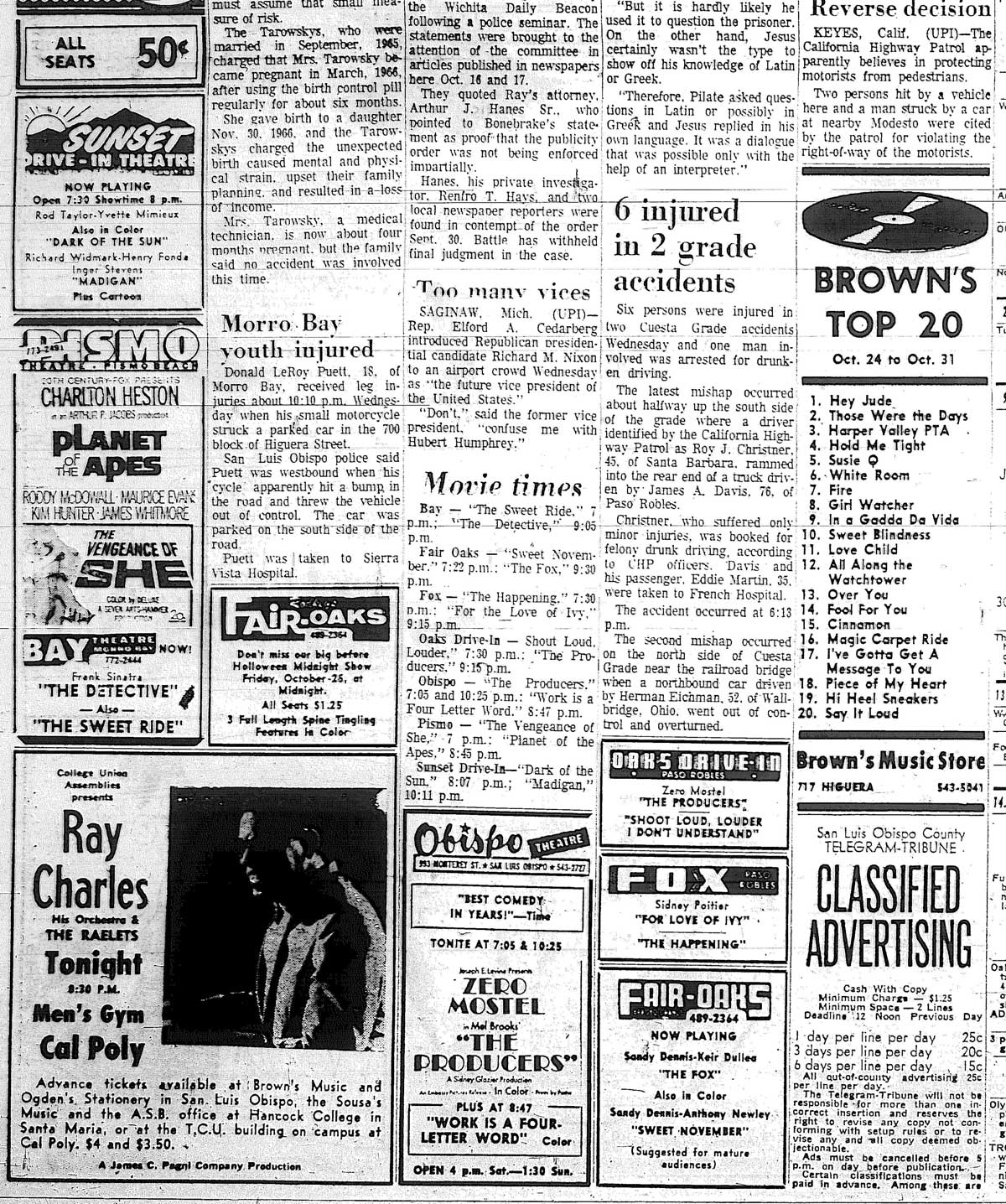 24 October 1968: Men’s Gym, Cal Poly, San Luis Obispo.