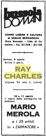 On 9 August 1979 Ray Charles, his Orchestra and The Raelettes gave their first concert at the Bussola Domani in Viareggio (cf. this).
