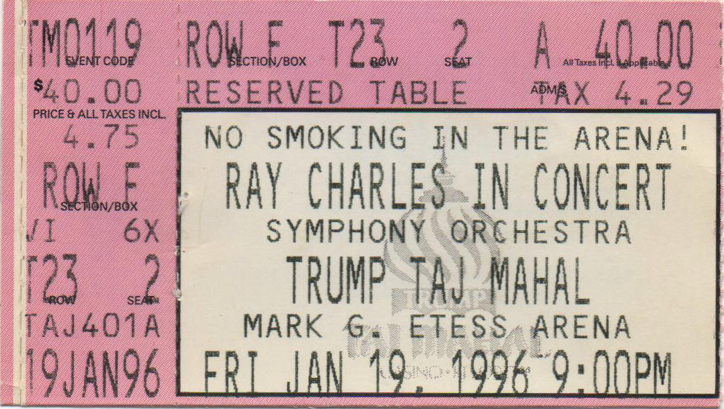 Read moreFrom 19 to 21 January 1996 Ray Charles played a series of symphony concerts at the Mark G. Etess Arena (in the Trump Taj Mahal), in Atlantic City. Ray flew in his orchestra’s rhythm section – with Peter Turre on drums, Kenny Carr on guitar, and Curtis Ohlson on bass – and Victor Vanacore as […]