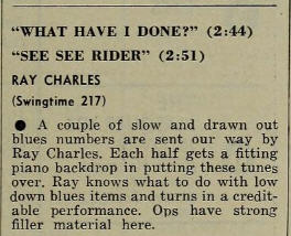 Read moreReview in ,Cashbox Sep. 15, 1951. Single (B): Down Beat 217, 1950, b/w See See Rider. Recorded in Los Angeles, 1950. Ray Charles Trio: Ray Charles – voc, p; Gosady McKee – g; Milton S. Garred – b.