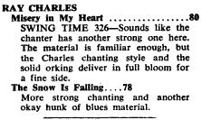 Ray Charles “With Orchestra”: Ray Charles – voc, p; arr; Billy Brooks, Fleming Askew – tp; Marshall Royal, Earl Brown – as; Stanley Turrentine, Maurice Simon – ts; Charles Waller – bs; Frank McClure – b; Eddie Pipper – ds.